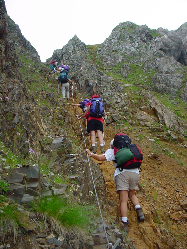 Colmean, ore 6,00 di domenica 20 luglio 2003, puntualissimi partiamo: Domenico, Nicola, Edoardo, i crodaioli, Igor, Pierluigi, Cesare ed Io, lo sparuto ma determinato drappello dei Montagnin. Capisco subito che dovrò "tirare" visto che sono l'unica donna del gruppo e che i miei compagni sono dei panzer inossidabili. Da buon vecchio diesel, lento e costante, mi piazzo nelle retrovie; ogni tanto qualcuno si volta, controlla la situazione. I crodaioli mi aspettano e fingono delicatamente di fermarsi qua e là a chíaccherare e a guardare il paesaggio che, sicuramente, conoscono a millimetro quadrato. Ore 8,20: siamo all'attacco ,della ferrata: i crodaioli come se andassero a fare due passi al Righi, Igor in perfetta tenuta da ferrata, Pierluigi con un cordino che non utilizzerà, Cesare con qualche moschettone di troppo, io ho solo il cordino ma, in compenso, indosso un bel caschetto rosso che mi ha prestato il Paccani. Partiamo: per primi Edoardo ed io, poi Cesare, Nicola, Igor, Domenico e Pierluigi che viene su come se andasse in bicicletta. Saliamo tra scalette, cavi e cavetti; è bellissimo; ogni tanto guardo in alto per vedere com'è la via, poi provo ad incastrarmi in un passaggio verticale: chissà cosa penseranno i crodaioli. In realtà sono gentili, simpatici e, soprattutto, espertissimi; credo che con Edoardo potrei anche andare sul Monte Bianco in assoluta sicurezza. Ci fermiamo su una sella per bere un po' d'acqua; qualche nuvola e un po' di nebbia fanno a rimpiattino con la Marmolada ma riusciamo a vedere anche l'arrivo della funivia illuminato dal sole. Ricominciamo a salire; a poco a poco la fatica lascia posto a nuove sensazioni. Sono contenta di essere qui dopo aver sentito parlare di queste cime per anni; non ci sono mai stata, ma non mi sento estranea, anzi. Ore 10,50: ancora un po' dì salita e siamo in vetta. Non mi sembra vero, sono arrivata alla Madonnina dì Giuseppe Arata, che i crodaioli amorevolmente ricollocarono al suo posto dopo che un fulmine l'aveva danneggiata. Non ho conosciuto Giuseppe, ma mi sembra di percepire la sua intima soddisfazione nel vedere la sua Madonnina lassù sulle sue amate cime; deve essere stato un gran bel personaggio. Avevo pensato che, forse, avrei dovuto dire due parole per celebrare il nostro 75° anniversario, ma quassù è tutto così semplice e spontaneo che mi sembra inutile parlare. In realtà un'emozione profonda mi consiglia il silenzio. Riesco a telefonare a Silvestro per dirgli che sono in cima. Poi mi guardo attorno; vedo Caviola là sotto, la croce immortalata nella foto in sede; penso che mi piacerebbe che fossimo tutti qui. Scrivo sul libro di vetta: 20 luglio 2003: I Montagnin di Genova nei 75° anniversario di fondazione in ricordo di tutti i Soci. Meno male che ho gli occhiali da sole: un paio di lacrime scappano prima che riesca a fermarle: penso a Liliana, a Franco, a quanto vorrei che fossero qui con me, ma sicuramente un po' ci sono Proprio sotto la Madonnina una foto ricorda due splendidi giovani crodaioli caduti su un'altra montagna. Siamo tutti un po' commossi. Foto per immortalare l'impresa e poi giù per una lunga ma bella discesa tra prateria e boschi fino a Colmean. Ringraziamo di cuore i crodaioli e ci diamo appuntamento per l'80°. Dalla finestra dell'albergo le Cime sono bellissime illuminate dal tramonto. Sembra che aspettino, sicure, il ritorno degli amici. Elisa
