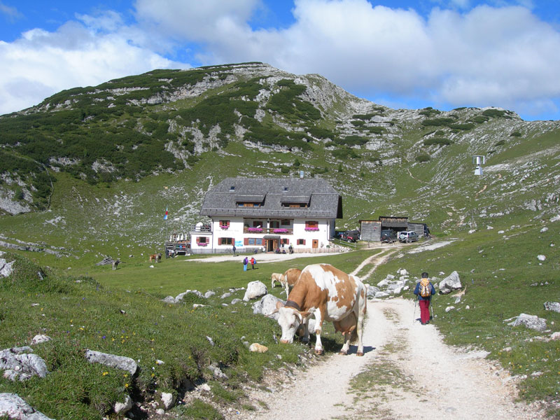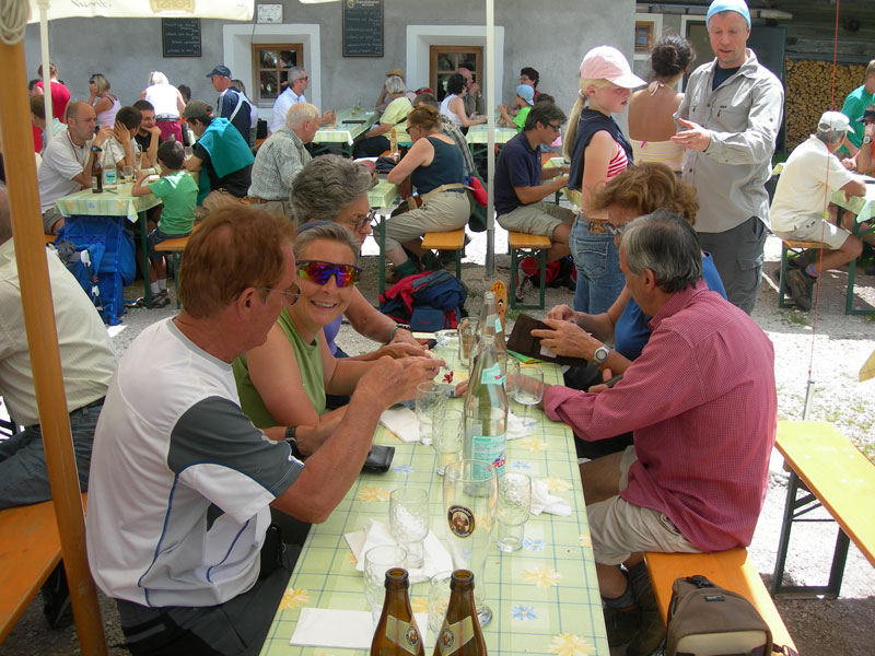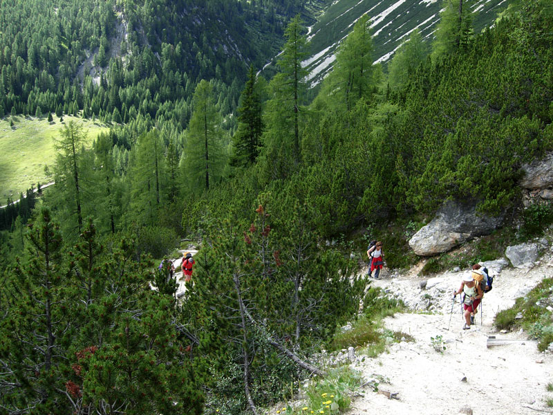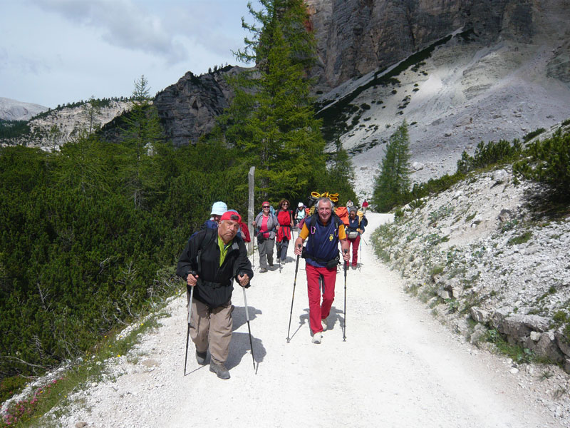 mitico parco di Versailles. Vedremo. Grazie, Igor. Elisa Da Braies a Neustift Storie da un trekking Noi, del gruppo della settimana verde di S.Vigilio, arriviamo al lago di Braies in anticipo all'appuntamento con gli altri Montagnin che arrivavano direttamente da Genova. Così mentre aspettiamo facciamo un giretto intorno al lago. E' pieno di macchine e di gente, si capisce subito che siamo in un luogo di villeggiatura. Sta a vedere che sarà una cosetta leggera, tutta da godere, con un bel sole e tanta allegria. Poi arrivano gli altri, con Igor che c'e l'ha con me perchè col telefonino gli ho dato il numero sbagliato di posteggio. Mangiamo in fretta un panino mentre il cielo rannuvola e vengono due gocce. Foto di gruppo dal lago e via in ordine sparso lungo lo stradello della riva. Si formano dei gruppetti, con una staffetta di tre malandrini che si invola appena il sentiero inizia a salire. Ed il sentiero si innalza per un tratto lunghissimo, prima lungo il canalone di un torrente, poi nel bosco, quindi con saliscendi sino.al passo sotto la Croda del Becco. Mi siedo dalla Madonnina, aspetto Fabrizio che giù in basso smoccola che vuole tornare alle spiagge di Pathong ed intanto mi guardo intorno: in fondo, sulla sinistra le Dolomiti di Sesto con il Bric dei Toni e le tre Cime. Diritto d'innanzi, nel blu del meriggio, i monti di Cortina, il Cristallo, l'Antelao, il Pelmo; sulla destra l'altopiano di Fanes e Sennes; all'estremo orizzonte, dove il sole muore tra le nubi ormai aperte e ròsse le Conturines con l'inconfondibile Sasso della Croce. Arriva Fabry, si guarda intorno e senza più lamentarsi scatta fotografie. Una ripida e veloce discesa sino al Rif. Biella. Mi sistemo aiutato da Angelo che fa da maggiordomo. Poi arrivano gli altri con Igor e tutte le donne. La Paola ha una caviglia disastrata. Domani al Rif. Sennes si dovrà fermare. Tutti sono sistemati. Il rifugio è vecchiotto e non molto moderno, ma a me piace ancora di più! Ai raggi dell'ultimo sole, seduti intorno ad un tavolo tre giovani, Rudy, Fabrizio ed una ragazza. Mi avvicino, fa decisamente freddo ed aumenterà ancora. I ragazzi parlano tra loro. La ragazza è molto più giovane, avrà una ventina d'anni, la metà dei loro. Lei porta un foulard colorato che le racchiude i capelli lunghi e neri, come neri e vivacissimi i suoi occhi, ed una bella bocca dai denti bianchissimi che sorride spesso. Così scopro che sta facendo quasi lo stesso trekking che facciamo noi. E' partita stamattina dal Ponte Alto di Cortina ed è arrivata al Biella attraverso l'Alpe di Fosses.Come noi. Domani andrà a dormire al Sennes, via Pederù. Come noi. L'ultimo giorno salirà alla forcella Lagazuoi per andare lungo la Tofana di Rozes sino al Rif. Dibona. Dormirà lì e poi attraverso un sentierino di guerra tornerà a riprendere l'auto al Ponte Alto. Non c'è che dire, proprio un bel giro. "Con chi sei, dove è il tuo gruppo?" "Sono sola, faccio un trek in solitaria, per riflettere, per pensare:" Lo dice con aria serena, come se fosse la cosa più naturale del mondo. Ci guardiamo. Angelo è stupito, io ammirato, Igor beve la sua birra in silenzio. "Ma non hai paura, di farti male, di fare qualche brutto incontro?" Lei risponde di no e ti guarda con gli occhioni neri, un sorriso disarmante, e stuzzica la penna sulle pagine del diario che stava scrivendo prima che l'angosciassimo con le nostre ansie. Restiamo in silenzio e lei chiude il diario e si mette a leggere un libretto che cava da una tasca della giacca a vento. Fine dei discorsi, è come se ci avesse congedati. Ci tratteniamo ancora un poco. Il tramonto si fa di fuoco. Vado in camera a prendere la fotocamera. Scatto un bel po' di foto alle rocce arrossate. La ragazza è ancora là seduta che legge, ed è rimasta sola. Mi avvicino e le chiedo come si chiama, raccontando qualche cosa sul nostro Gruppo. Mi risponde interessata con il suo accento veneto; dice di essere vicentina ma che vive e studia a Padova. "Mi chiamo Irene" Resto a bocca aperta. La potenza evocativa di quel nome mi colpisce come una frustata. Lo so che è un caso, che non c'entra niente, ma sono molto turbato. " Il tuo nome è bellissimo" dico " deriva dal greco e significa pace" Nei suoi occhi scorgo gli stessi occhi e nel suo sorriso lo stesso sorriso di quell'altra Irene che avevo conosciuto 45 anni prima in un luogo a pochi km in linea-d'aria da qui. " Lo so"- risponde- Era il nome di mia nonna, che era nata subito dopo la Grande Guerra e l'hanno chiamata così in segno di buon augurio." Non potevo continuare quella conversazione, ero troppo colpito, poi lei si vedeva che voleva restare da sola, per leggere il suo libro, per pensare a cose sue. Abbiamo rivisto quella ragazza coraggiosa la sera dopo al Rif. Fannes intenta a leggere il suo libro. L'indomani poi ci siamo salutati alla Malga di Fanes Grande, dove le nostre strade si dividevano. Ciao Irene, buona fortuna per tutta la tua vita, che sarà bellissima, per te e per quel fortunato ragazzo che incontrerai. Abbi sempre buoni sentieri, anche se sei fortissima! Mi perdonerete questa divagazione un po' personale ed un po' patetica, ma forse mi potrete capire. Di altri fatti rimarchevoli il nostro trek ne annovererà ancora. Andiamo per ordine con un po' di cronaca: la salita alla Croda del Becco di 4 Montagnin coraggiosi, la fermata di Paola al Rif. Sennes, la discesa ripidissima ed interminabile sino al Rif. Pederù, la tranquilla risalita sino al Rif. Fanes, il percorso facile e interessante. Alcune complicazioni per le camere al rifugio si sono risolte grazie alla fermezza del nostro presidente e la notte e la mattinata successiva sono senza acuti. Il terzo giorno la lunga discesa attraverso il parco delle Dolomiti di Cortina con i mugugni di Igor che "non valeva la pena di scendere tanto per vedere una cascata". Per la verità la discesa è senza fine, ma i Montagnin se la prendono comoda e quando arriviamo alla cascata è quasi mezzogiorno. Seguirà un lun